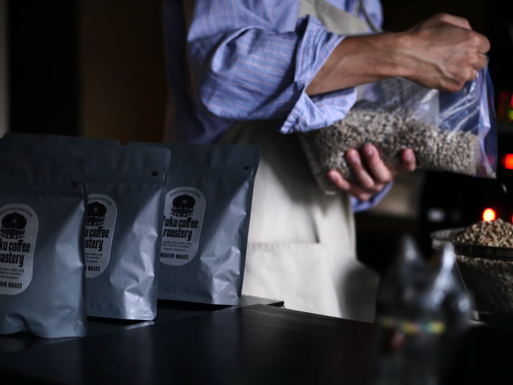 At Fuku Coffee Roastery, we start the roasting process by checking each and every raw bean we receive and thoroughly removing any that are defective. We then do a double check after roasting to ensure that only the best beans remain.